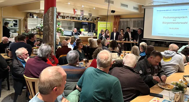 Die Podiumsveranstaltung wurde von der Ortsgruppe des überparteilichen Vereins Energiewende ERH e.V. organisiert. Zwei Stunden lang stellten sich die fünf KandidatInnen für das Bürgermeisteramt vor einem interessierten Publikum im sehr gut besuchten Sportheim des FCE den Fragen von OG-Sprecherin Gertrud Reichert-Brod. In den teils kontrovers, teils übereinstimmend formulierten Antworten der KandidatInnen wurde klar, dass Klimaschutz in fast alle Bereiche der Kommunalpolitik hineinspielt und...