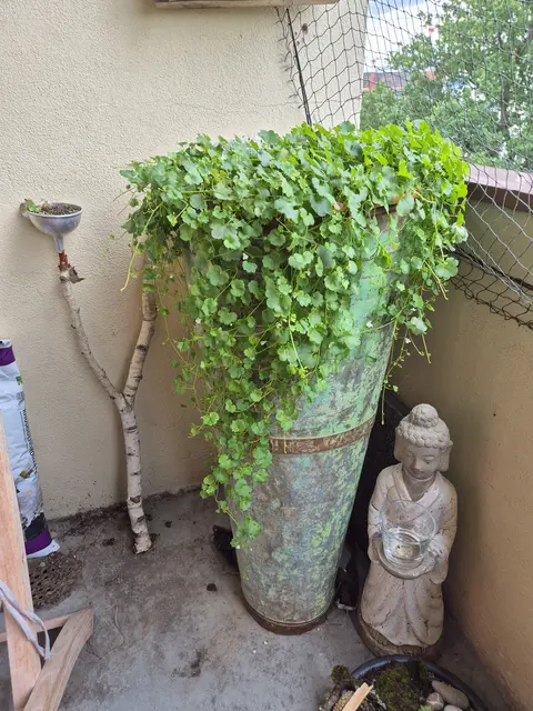 In der Schale ist Zimbelkraut gepflanzt. Super Dekoration für Balkon, Terrasse und Garten!