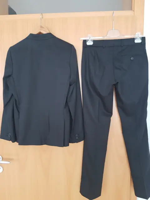 slim fit, dunkelgrau, 64 % Polyester, 35 % Viskose, waschbar. Für festliche Anlässe wie Konfirmation, Tanzstundenabschlussball etc.