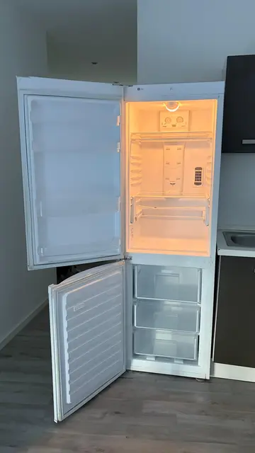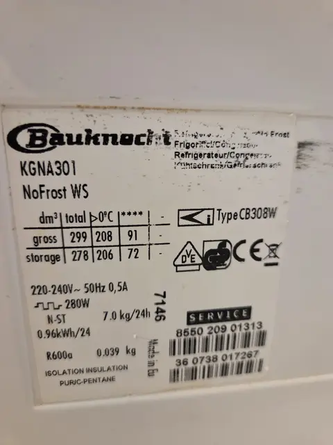 Bauknecht Kühlgefrierkombination KGNA301 | NoFrost | 188 cm hochHallo zusammen,ich verkaufe meine zuverlässige Kühlgefrierkombination von Bauknecht (Modell KGNA301) in Weiß. Das Gerät ist gebraucht, sauber und funktioniert technisch einwandfrei.Durch die NoFrost-Technologie bildet sich kein Eis im Gefrierfach, sodass man es nie wieder manuell abtauen muss.Technische Daten & Maße: * Breite: 60 cm * Höhe: 188 cm * Nutzinhalt gesamt: 278 Liter * Kühlschrank: 206 Liter * Gefrierfach: 72 Liter (3 Schubladen) * Technik: NoFrost (nie wieder abtauen), Air Control System * Modell: KGNA301 / Type CB308WWichtiger Hinweis zum Zustand:Der Kühlschrank ist in einem guten Zustand. Einzig das untere Obst-/Gemüsefach fehlt. Die Glasplatte darüber ist vorhanden, sodass der Platz ganz normal als Abstellfläche genutzt werden kann. Ersatzfächer gibt es bei Bedarf oft günstig online.