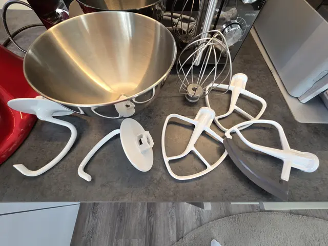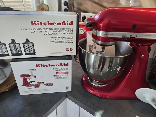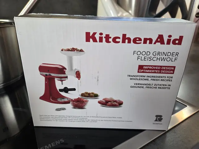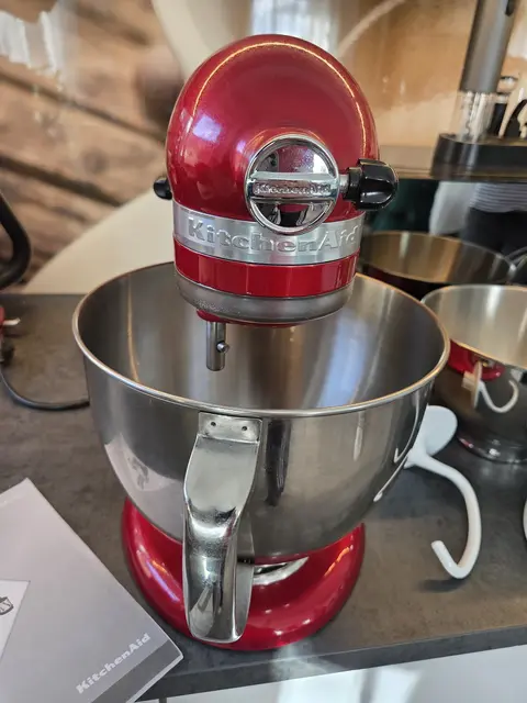KitchenAid Artisan 5KSM175 Liebesapfelrot – Wie NEU – Inkl. Fleischwolf & Gemüseschneider OVPIch verkaufe meine hochwertige KitchenAid Artisan (Modell 5KSM175) in der wunderschönen und klassischen Farbe Liebesapfelrot (Candy Apple). Die Maschine ist ein echter Blickfang in jeder Küche, extrem robust und langlebig. Da sie bei mir leider kaum genutzt wird, darf sie nun in eine neue Küche weiterziehen.Zustand: * Die Küchenmaschine wurde lediglich 4 bis 5 Mal benutzt. * Das Gerät ist technisch und optisch in einem hervorragenden, fast neuwertigen Zustand. * Das gesamte Zusatz-Zubehör (Gemüseschneider & Fleischwolf) ist noch komplett neu und originalverpackt (OVP).Lieferumfang & Neupreise im Detail: * KitchenAid Artisan 5KSM175 Basisset (Liebesapfelrot): (Neupreis: 599,- €) – Inkl. 4,8L Edelstahlschüssel, zusätzliche 3L Edelstahlschüssel, Spritzschutz, Schneebesen, Flachrührer, Flexi-Rührer und Knethaken. * Gemüseschneider-Set (MVSA): (Neupreis: 129,- €) – Zum Reiben, Zerkleinern und Schneiden (NEU & OVP). * Fleischwolf-Aufsatz (FGA): (Neupreis: 99,- €) – Inkl. Messern und Zubehör (NEU & OVP).Gesamtwert des Sets: 827,00 €Wichtiger Hinweis zum Verkauf:Aufgrund des hohen Gewichts der Maschine und des umfangreichen Zubehörs ist nur eine Abholung möglich. Es erfolgt kein Versand und keine Zustellung. So können Sie sich vor Ort auch gerne persönlich vom neuwertigen Zustand überzeugen.Hinweis: Dies ist ein Privatverkauf. Der Verkauf erfolgt unter Ausschluss jeglicher Sachmängelhaftung, Gewährleistung, Garantie oder Rücknahme.