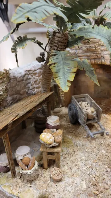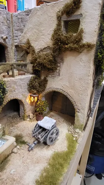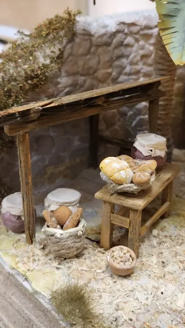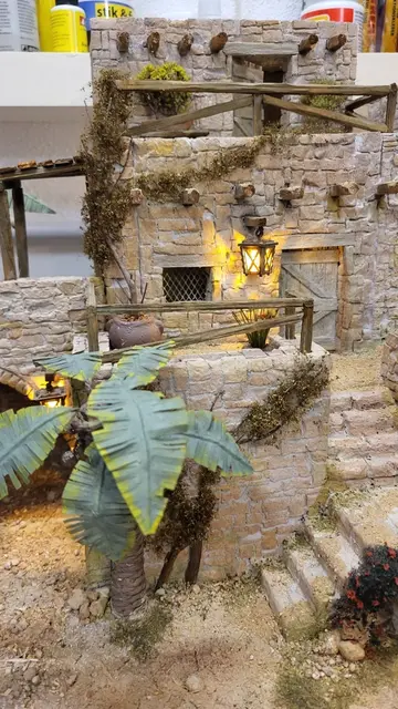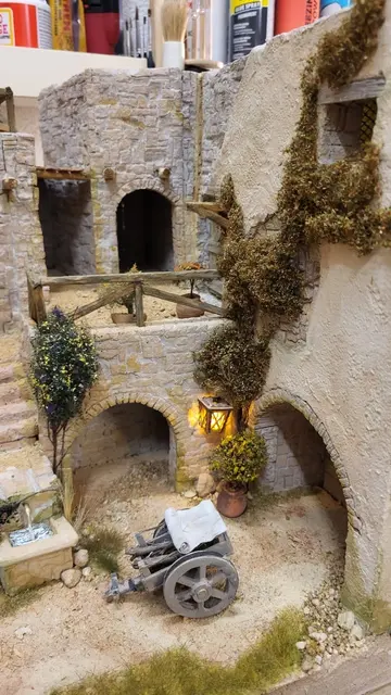 ausgefallene mit viel Aufwand und Liebe zum Detail gefertigte Krippe. Alles handgemacht, Krippe sowie alle Dekoteile.