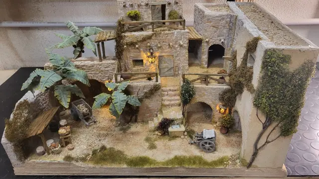 ausgefallene mit viel Aufwand und Liebe zum Detail gefertigte Krippe. Alles handgemacht, Krippe sowie alle Dekoteile.