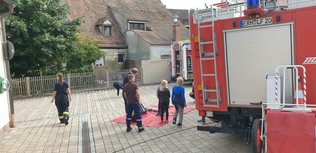 Wie leiste ich Erste Hilfe bei einer Person und wie lege ich eine Person in die stabile Seitenlage war eine der Stationen auf der Reise durch das Feuerwehrhaus. Woher kommt das Löschwasser für die Feuerwehr in den Straßen von Forth? Gemeinsam konnten die Kids einen Hydranten setzten und In Betrieb nehmen. Was für technisches Gerät ist am Feuerwehrauto verladen? Mit Hilfe von Hebekissen konnten wir ein Auto anheben.