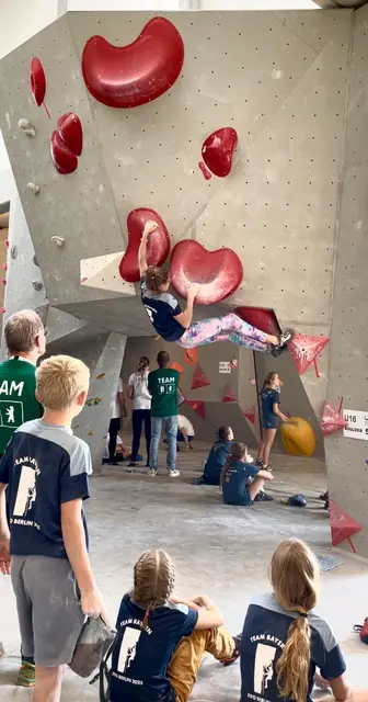 Sportklettern stand in Berlin erstmals und nur auf Probe auf dem Programm, ausgeschrieben war der Wettbewerb für Mixed-Mannschaften mit bis zu 6 Teilnehmern in der Altersklasse „Unter 16“. Bei dem Test-Event mussten die olympischen Kletterdisziplinen Lead, Speed und Bouldern absolviert werden, in die Mannschaftswertung kamen jeweils die vier besten Ergebnisse. In einem spannenden Wettkampf meisterte das junge Team des GymEck mit Aurelia Matros 8e, Tobias Gründler 7f, Paula Perschmann 7c, Justus Nowak 6d und Pauline Nowak 9a diese Herausforderungen mit großartigem Einsatz und belegte am Ende einen hervorragenden zweiten Platz. Verdienter Bundessieger wurde die Mannschaft vom Heinrich Heine Gymnasium aus Kaiserslautern/Rheinland Pfalz, eine Eliteschule des Sports mit Fördersportart Klettern.
