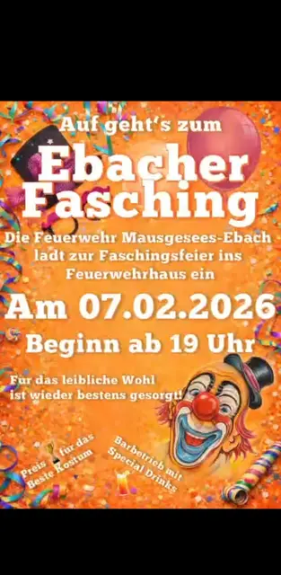 Die Feuerwehr Mausgesees-Ebach lädt am Donnerstag, 14. Mai, alle herzlich zum traditionellen Grillfest ab 11 Uhr am Feuerwehrhaus in Ebach ein.Selbstverständlich ist auch für das leibliche Wohl gesorgt. Zum Mittagstisch werden leckere Grillspezialitäten mit Salat angeboten, nachmittags gibt es Kaffee und Kuchen. Für die Vorbereitung und den Aufbau treffen sich alle Aktiven und Helfer um 9 Uhr am Feuerwehrhaus.Es werden Kuchen und Zaziki-Spenden für das Grillfest benötigt. Wer dazu beitragen...