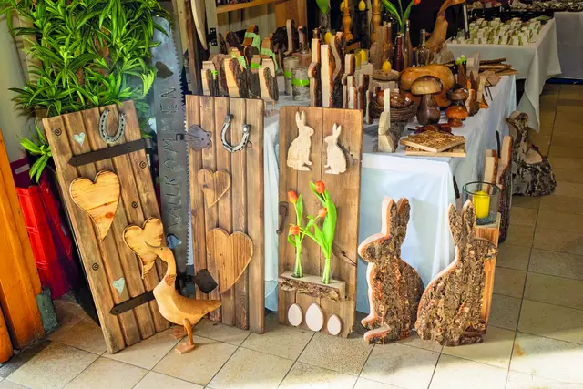 Da alle Artikel von Hand gefertigt werden, ist jedes Stück für sich ein Unikat – einige Aussteller lassen sich bei ihrem Kunsthandwerk wieder über die Schulter schauen. So kann man z.B. bei der Kunst des Vergoldens mit Blattgold zusehen. Es werden einzigartige Gürtel und Schmuckstücke aus gebrauchten Fahrradreifen gezeigt und individuell angepasst. Das Team von „Nadelfieber“ zeigt Besticktes und kann auch vor Ort noch individuell Textilien besticken. Jahreszeitlich passend werden vor Ort natürlich auch verschiedene Techniken der Ostereiergestaltung gezeigt und gerne auch erklärt.