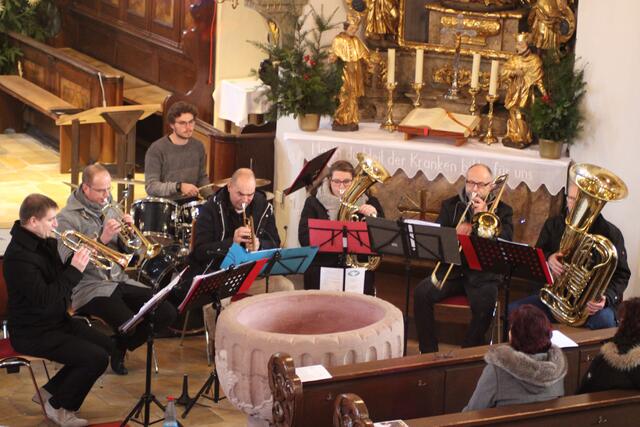 Die Blechbläser-Formation des Musik- und Trachtenvereins beim Adventskonzert in der Kirche Mariä Heimsuchung in Bühl.