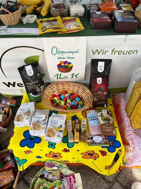 Der Weltladen Eschenau ist am 2. April (Gründonnerstag) von 14 bis 17 Uhr mit einem Stand auf dem Ostermarkt am Rathausplatz vertreten. Besucherinnen und Besucher erwartet eine Auswahl an fair gehandelten Produkten, Osterdeko und Osterschokolade – dazu zwei Aktionen mit Gewinnchancen und kleinen Extras. Passend zur Osterzeit bringt der Weltladen eine bunte Auswahl fair gehandelter Produkte mit – von süßen Leckereien über Kaffee und Tee bis hin zu kleinen Geschenkideen und österlicher...